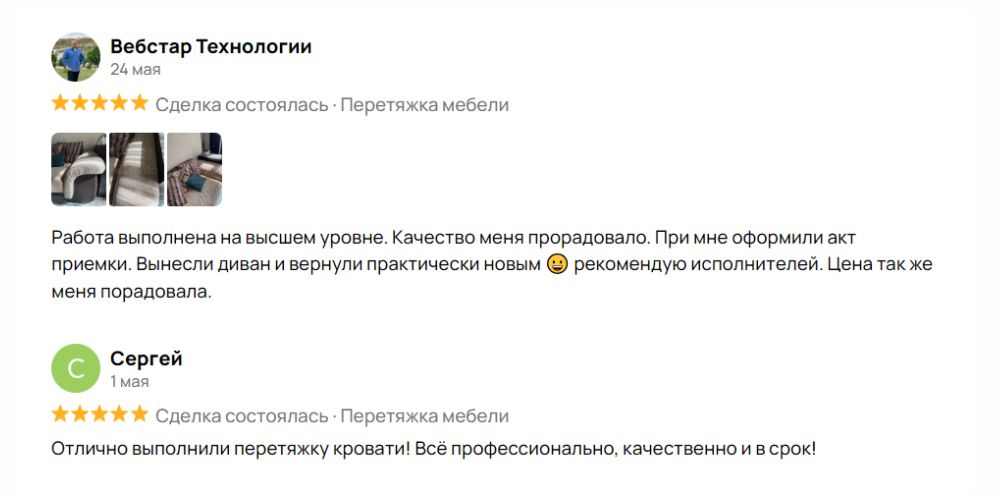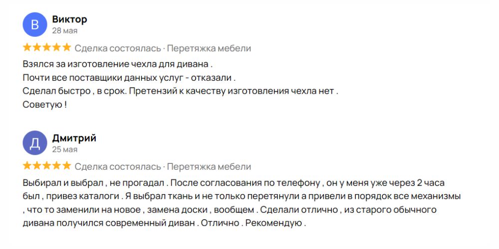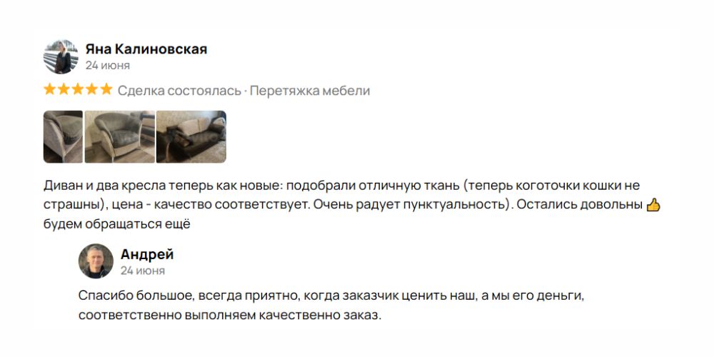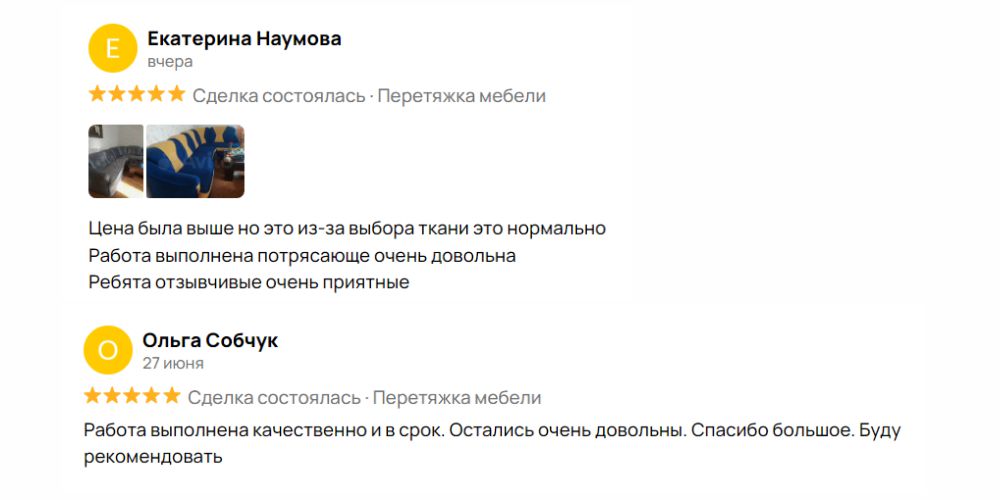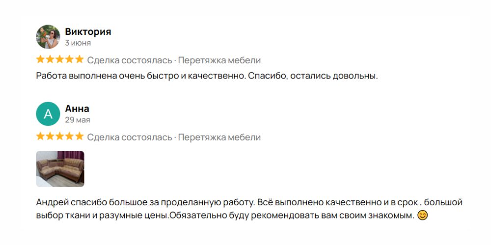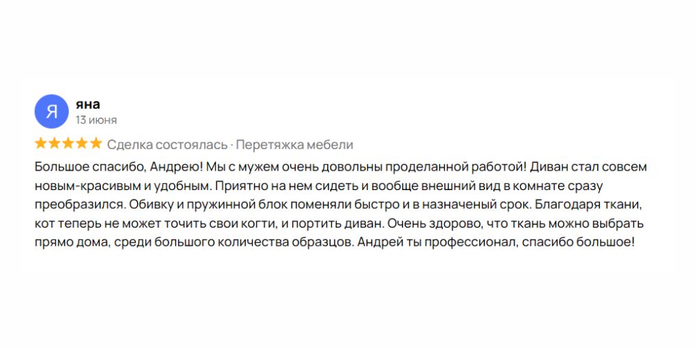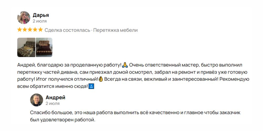 Обратившись к нам, вы всегда будете знать точную дату окончания обивочных работ, выполняем свою работу качественно и